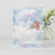 Baby girl floating in an umbrella in the clouds with ribbons.