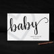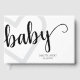 Simple monochrome black and white baby flourish calligraphy heart shower or gender reveal party design featuring a fun, casual hand-lettered script. The classic design includes a modern handlettered quote typography heart overlay. For other colours or matching products, please visit the JustFharryn Zazzle store, or contact the designer, c/o Fharryn@yahoo.com All rights reserved. #zazzlemade