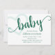 Green and white baby flourish calligraphy heart shower or gender reveal party collection featuring a fun, casual hand-lettered script. The classic design includes a modern handlettered quote typography heart overlay. For other colours or matching products, please visit the JustFharryn Zazzle store, or contact the designer, c/o Fharryn@yahoo.com All rights reserved. #zazzlemade