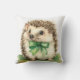 Baby Hedgehog Green Bow Gender Neutral Throw Pillow