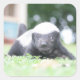 A photograph I took when I was 15 of our rescue baby honey badger, which we raised and later took to a rehabilitation centre. This photograph features an African honey badger on a green lawn.
