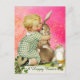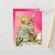 BABY HUGGING EASTER BUNNY IN PINK FUCHSIA SPARKLES HOLIDAY POSTCARD