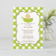 Adorable Boy Baby Shower invitation featuring a cute baby in a sweet pea pod set on a green & white polka dots background. Matching items available in our shop. Perfect for a baby boy, baby girl or neutral baby shower. ©JD Digi Designs