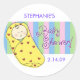 Baby shower stickers, featuring original dio illustration of baby in blanket. Customize it!