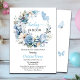 A sweet Baby Shower Invitation with a blue floral garland and butterflies that you can personalize with your details.