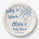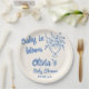 Baby In Bloom Blue Hand Drawn Floral Baby Shower Paper Plate