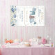This “Baby in Bloom” banner was inspired by a gentle spring meadow filled with soft blue wildflowers and fluttering butterflies. The adorable baby clothesline illustration adds a cozy, playful touch, making it a beautiful statement piece to welcome guests to your baby shower celebration.