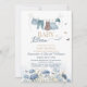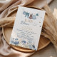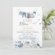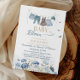 Inspired by a peaceful spring meadow, this “Baby in Bloom” invitation features delicate blue wildflowers, fluttering butterflies, and a charming baby clothesline illustration. The soft watercolor palette creates a fresh, airy feel—perfect for inviting loved ones to celebrate a sweet new arrival.