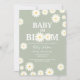 Girl Baby in Bloom Daisy Floral Sage Green, Olive Green, Dusty Green Baby Shower Invitation