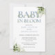 Baby In Bloom Dusty Blue Greenery Baby Shower Invitation