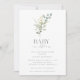 Our rustic 'BABY IN BLOOM' invitation features a fluid combination of serif and cursive typography, hand-painted mint-green foliage, and highly detailed white flowers. Create an elegant, chic and stunning baby shower theme with this gender neutral collection of products.