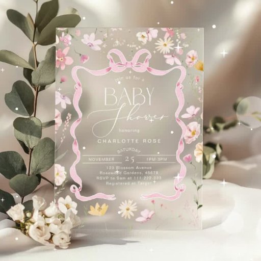 Pink Bow Ribbon Frame Floral baby showerDesigned by Julia J