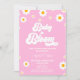 Baby In Bloom Pink Retro Daisy Flower Baby Shower Invitation