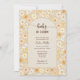 Baby in Bloom pressed flowers invitation features a soft rustic arched frame with pressed wildflowers on a muted canvas background.