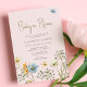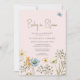 Modern watercolor floral "baby in bloom" boho chic elegant pastel blush pink spring baby girl shower invitation template with rustic nature garden wildflowers border and butterflies.