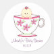 Make cupcake toppers, seal your envelopes or decorate your favour bags with these adorable baby shower stickers featuring a baby girl inside a tea cup. Great for tea party baby showers!