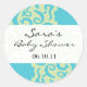 Fun fabric and paisley favour sticker. Matching invitation, thank you card and postage stamp.