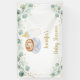 This adorable banner features watercolor greenery with coffee, a baby bottle and gold foil accents.