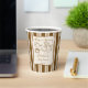 Baby is brewing retro stripes coffee baby shower personalized paper cups, vintage retro brown stripes hand drawn coffee baby shower monogrammed paper cups, hand writing baby shower printed coffee cups, a baby is brewing baby shower personalized table decor