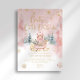 Bring cozy winter charm to your celebration with this pink and gold “Baby It’s Cold Outside” baby shower invitation. A sweet bear in a sleigh surrounded by snow-dusted evergreens and shimmering snowflakes sets the perfect scene for a holiday baby shower. Beautifully detailed artwork creates a warm, festive look that’s perfect for winter wonderland or Christmas-themed gatherings.