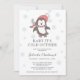 Whimsical cute penguin winter animal with snowflakes baby shower invitation in a gender neutral style, with the saying: baby it's cold outside.
