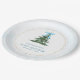 Elegant baby shower paper plates featuring a cute Christmas tree and modern typography on a beautiful watercolor blue background.