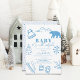 This chic "baby it's cold outside" boy's baby shower invitation features a white background with hand-drawn winter illustrations, such as mountains, skis, gloves, a beanie, polar bear, tree, and snowflake in ice blue. The reverse side features a pale blue background with white snow pattern. Personalize it for your needs. You can find matching products at my store.