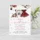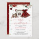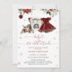 The Baby it's Cold Outside Christmas Baby Shower Invitation is a delightful and festive celebration theme, combining the magic of Christmas with the joy of welcoming a baby girl. Central to the design is a dressed in a charming burgundy dress, which exudes a cozy holiday feel. The dress is beautifully embellished with winter flowers adding a touch of seasonal elegance and nature’s wintry charm. Other Christmas-inspired elements such as wrapped gifts, snowflakes, and ornaments surround the scene, creating a cheerful and festive environment. Matching items available.