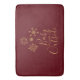 A bathmat with an illustration of fancy golden snowflakes with elegant crystalline shapes. Trendy typography says: Baby it's cold Outside. Red burgundy background.