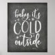 Add a rustic touch to your holiday decor with this wintry frameable print. Typography based design features the phrase "baby it's cold outside" in white hand lettered type accented with snowflakes, on a chalkboard background.