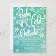 Modern winter baby shower invitation featuring hand lettered typography "baby it's cold outside" surrounded by white snowflakes set on a unique sea foam green watercolor background for a gender neutral baby shower.