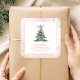 Elegant baby shower stickers featuring a cute Christmas tree and modern typography on a beautiful watercolor blush pink background.