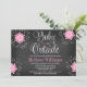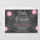 An chic winter themed baby shower invitation. Featuring a script font with the phrase "Baby It's Cold Outside", with pink and white snowflakes on a chalkboard background design. Modern and cute for a girl baby shower.
