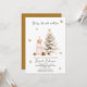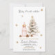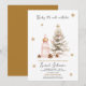 This enchanting baby shower invitation features a cute watercolor illustration of a baby bottle and Christmas tree in winter tones.