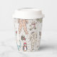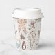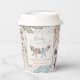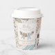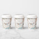 These gender neutral winter or holiday season Baby Shower paper cups feature cute pattern of hand-drawn illustrations of Christmas pajama bodysuits, cute plush animals, baby bottles, pacifiers, presents and tiny yellow stars. Customizable name and event. Elegant ivory background.