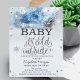 Cute baby shower invitation features a snowflakes and forest. These baby shower invitations are easily customized for your event by simply adding your details.
