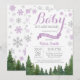 Baby its Cold Outside Winter Baby Shower invitation. Purple Snowflake. Girl Baby Shower Invitation. Winter Holiday Baby Shower Invite. Purple and Grey Silver Snowflakes. White Background. Green Forest Trees. For further customization, please click the "Customize it" button and use our design tool to modify this template.