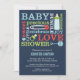 This baby shower invitation features a colourful and bold mixture of modern baby icons.
