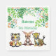 Small details make huge difference for a party and celebration. Enjoy your little one's Birthday party with custom napkins. The illustration has forest greenery, Baby tiger, Baby kangaroo and baby Leopard. The TEXT can be easily personalized with your choice of celebration.