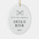 Celebrate your baby's first Christmas with this elegant and timeless ornament, personalized with your baby's name and the year 2024. Featuring a simple, classic design with a cute bow illustration and modern typography, this keepsake will hold cherished memories for years to come. Perfect as a gift for new parents or to add a special touch to your own tree, this ornament is a beautiful way to commemorate this precious milestone."