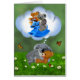 A baby Koala napping with its Teddy bear begins to dream of playtime on a rocking horse while hugging its toy playmate.