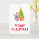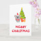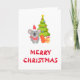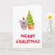 This adorable Christmas Folded Greeting Card with a koala is wearing a christmas hat and standing next to christmas tree and gifts.