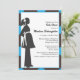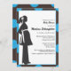 These modern baby shower invitations feature a modern pregnant silhouette with a bright blue & black background.