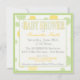 Fun dot print with coordinating stripe ribbon and novelty 3D-look baby pacifier trimmings in yellow and green baby shower invitation card.