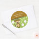 Our cute "Baby Monkey" favour stickers are customizable and you can use on your favours, gifts, candles, coffee bags, suckers, cookies etc.... We have matching invitations, thank you notes and address labels available in our Zazzle Store. Also check our website for matching items: www.allpetscherished.com Full colour printing with a cute graphic we modified from Scrappin'doodles