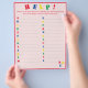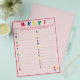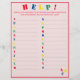 Design features a pale pink background to a bright red border and text. "HELP!" is displayed at top in bright colours. Directions are customizable for a more personalized touch, if desired. Guests are asked to list female baby names beginning with the letter shown. Also available in blue. Designed to coordinate with the "ABC Baby Shower and Nursery Collection."