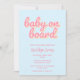 Modern baby shower beach party invitation. Retro inspired groovy the big one themed shower for mom to be with hippie style colours, a surf board, and boho fonts.
