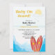 There is a baby on board. A boho beach-style baby shower invitation will set the tone for a joyful and laid-back baby shower. The invitation features a fun surfing a theme that is ideal for an oceanside celebration. The majority of the lettering is changeable; to do so, click the "Customize Further" option.