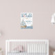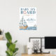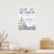 Welcome guests to your nautical-themed baby shower with this charming sign featuring a classic blue and white sailboat in the middle of a blue ocean, complete with a seagull perched on a rock. A red life-ring, blue water, and rope details add to the maritime charm.