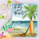 Baby on Board! Baby shower invitation - perfect for a summer baby shower. Beach theme. Watercolor design has a ocean and beach scene with surfboard, palm tree and summer hat.